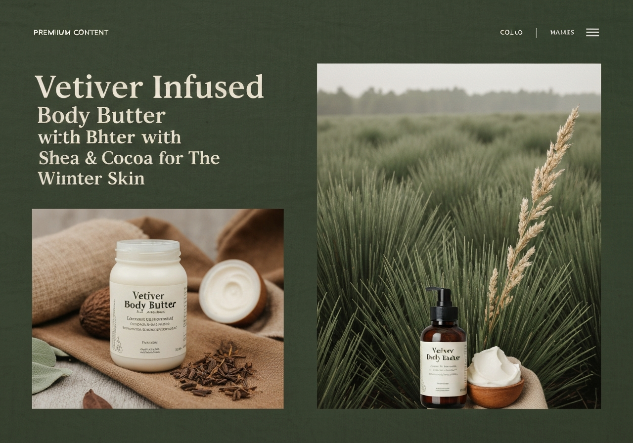 Vetiver Infused Body Butter with Shea and Cocoa for Winter Skin